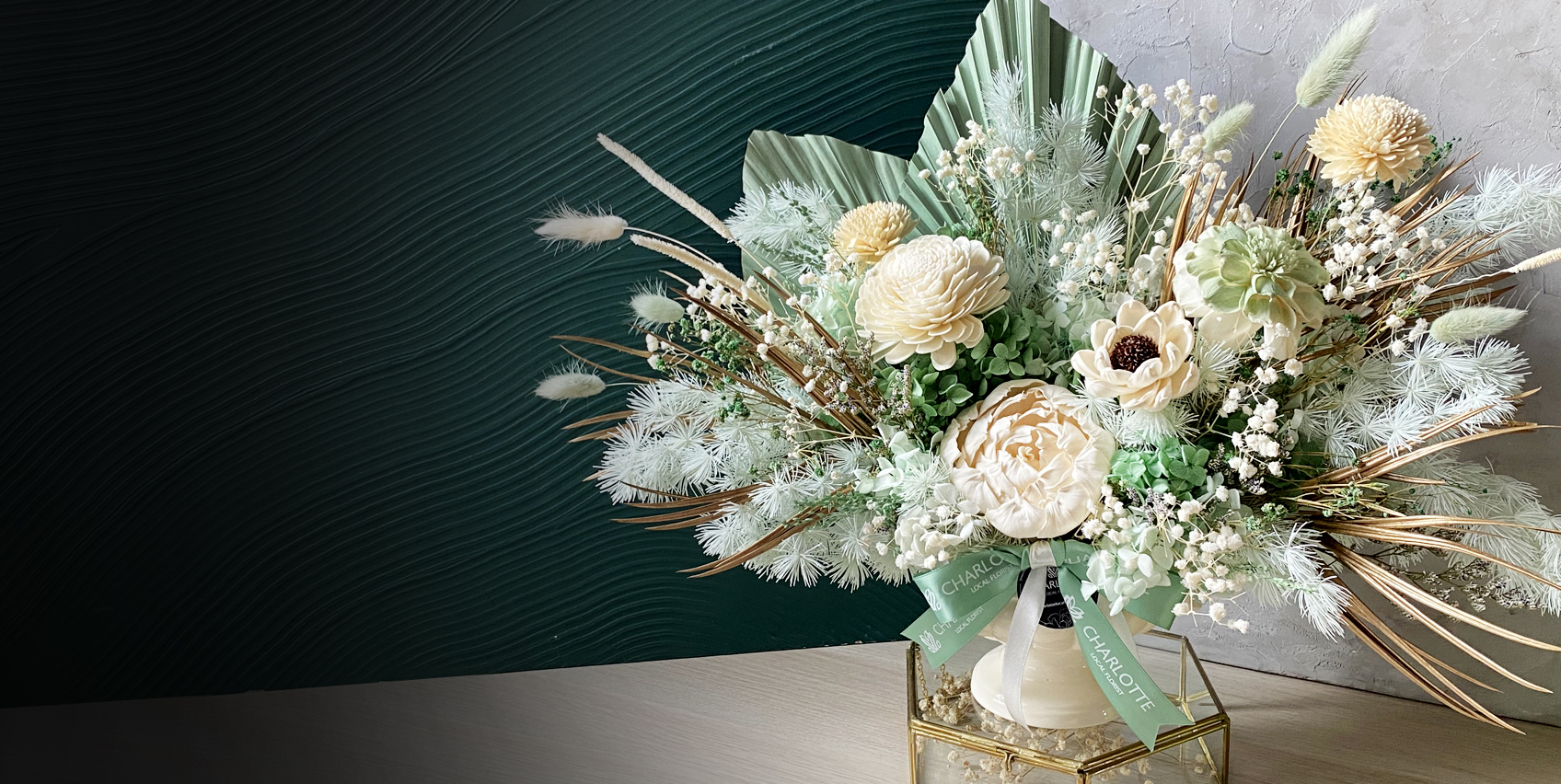 Enjoy the vibes with everlasting flower and art arrangement.